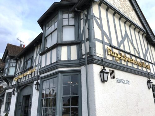 Vår välkomstmåltid intar vi på The Royal Standard of England, en av Englands äldsta pubar med över 900 år på nacken, belägen i lantliga omgivningar utanför Beaconsfield. Här ska kung Charles I ha ätit frukost under det engelska inbördeskriget. Kommissarie Barnaby har ätit här. Puben har också förekommit i tv-serierna After Life och Saknad, aldrig glömd (Unforgotten). Och det spökar!